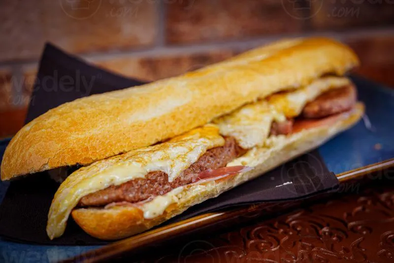 Hamburger, oeuf, fromage, jambon,